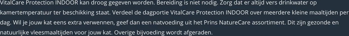 | Bijzonder voedingsdoel | Voor binnenkatten |