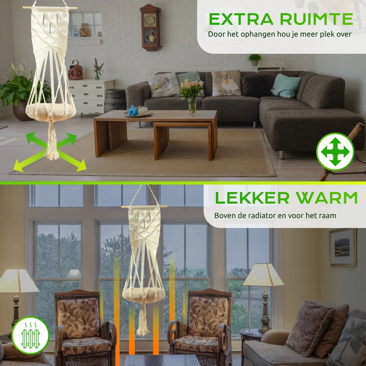 - Op te hangen voor het raam of boven de radiator