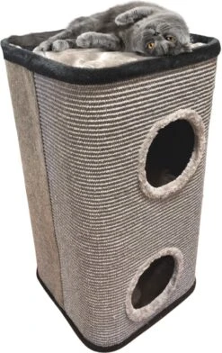 Deze twee verdiepingen tellende krabton van Topmast is de favoriete plek van elke kat. De buitenkant van de krabton is afgewerkt met sisal – een touwsoort waar katten dol op zijn en waardoor jouw kat zijn nagels goed kan verzorgen. Bovenop de krabton ligt een lekker zacht kussentje waarop je knorrende vriend heerlijk kan wegdromen. Elke verdieping van deze krabton heeft een ingang en vanaf de tweede verdieping kan je kat van binnenuit naar benden klimmen. Een speelplaats en een slaapplek in één!