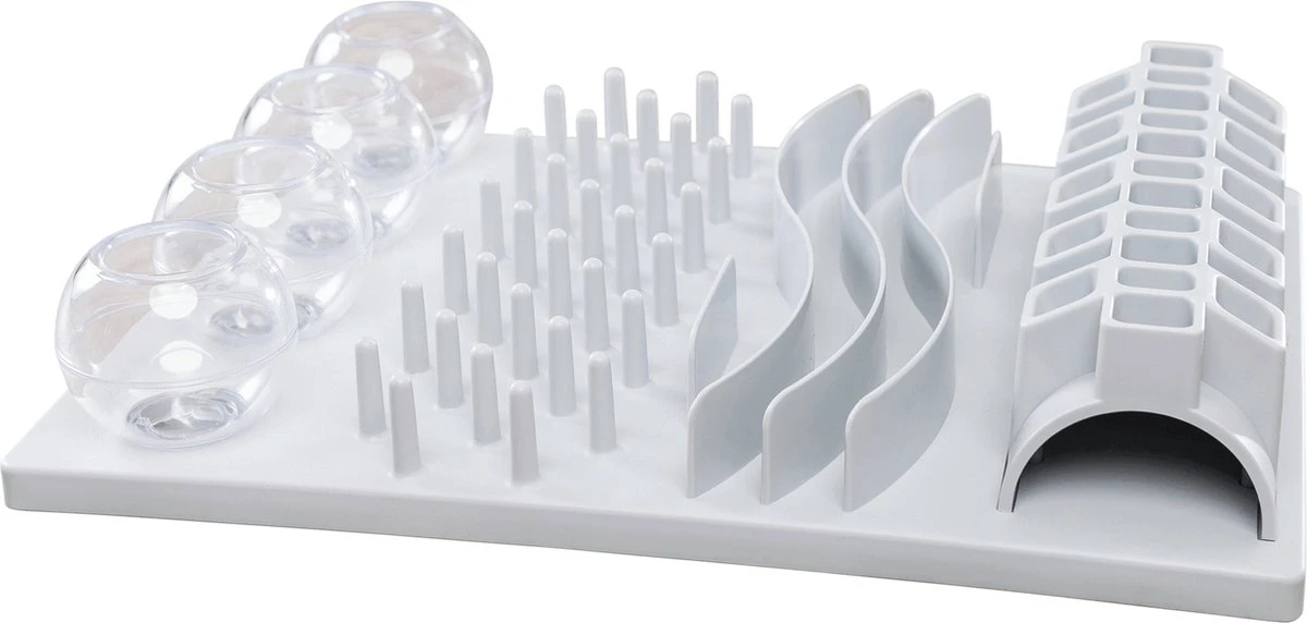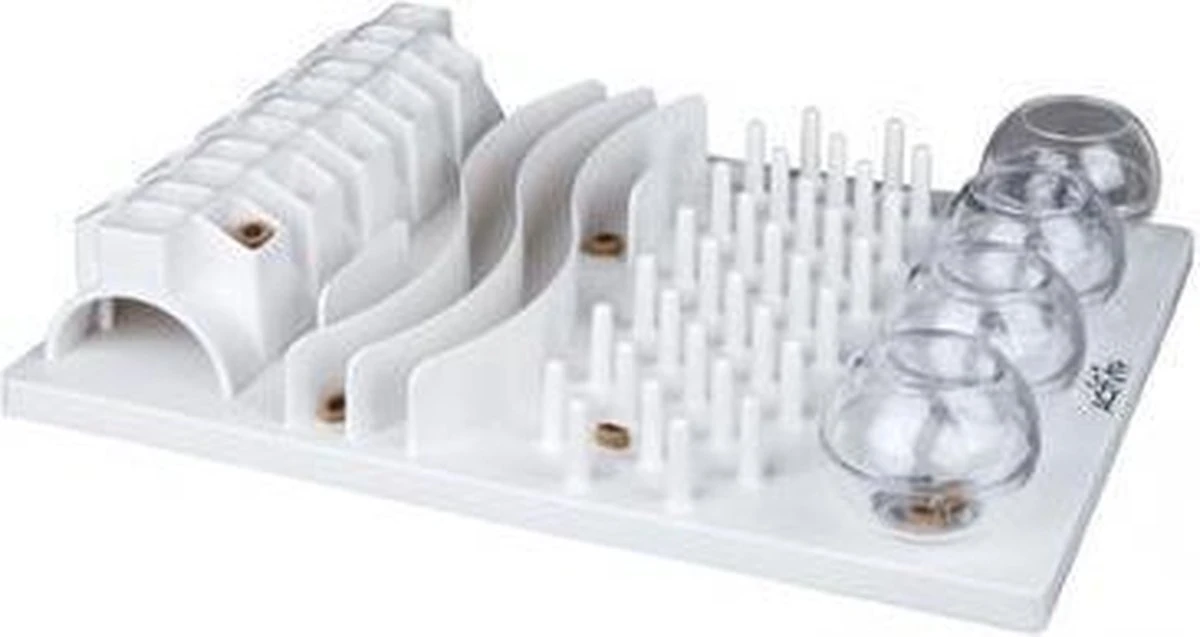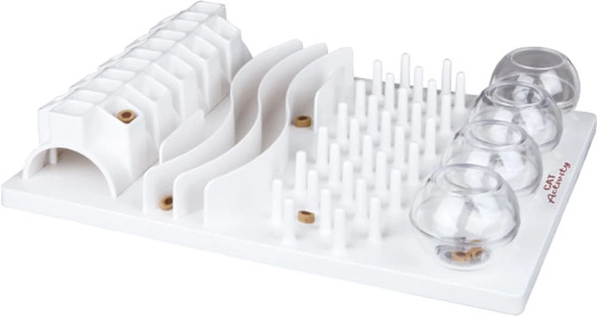 Het uitdagende Trixie Cat Activity Fun Bord bordspel bevat vijf verschillende spellen waarmee je jouw kat kunt uitdagen om op een speelse manier een snack te verdienen. Leg een snack of brokje in de tunnel, in een vakje, een gleuf, tussen de pinnen of in een van de bakjes. De kat zal zijn pootjes en behendigheid moeten gebruiken om de beloning te pakken te krijgen. Dit is ook te doen met gewoon voer, waardoor je kat langer bezig zal zijn met eten en dus minder de kans heeft zijn voer naar binnen te schrokken. Ook ideaal voor oudere of zieke katten.