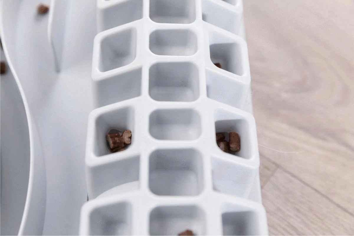 – Voorkomt schrokken doordat je kat langer bezig is met zijn eten te pakken krijgen